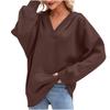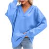 Damski swobodny pulower z dekoltem w serek, z długim rękawem, jednolity kolor, podszyty polarem, z kapturem, top