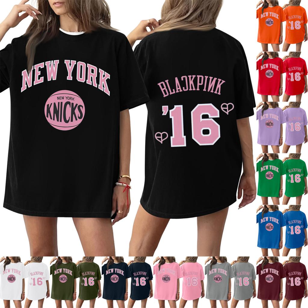 Damski T-shirt z krótkim rękawem i nadrukiem z okrągłym dekoltem