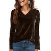Damska Moda Casual Aksamitny Jednolity Kolor Dekolt V Długi Rękaw T-shirt Top