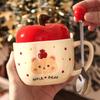 Wysokiej jakości kubek z jabłkiem, uroczy ceramiczny kubek na wodę z misiem i pokrywką, prezent urodzinowy dla dziewczynek, pamiątka dla dziewczyny