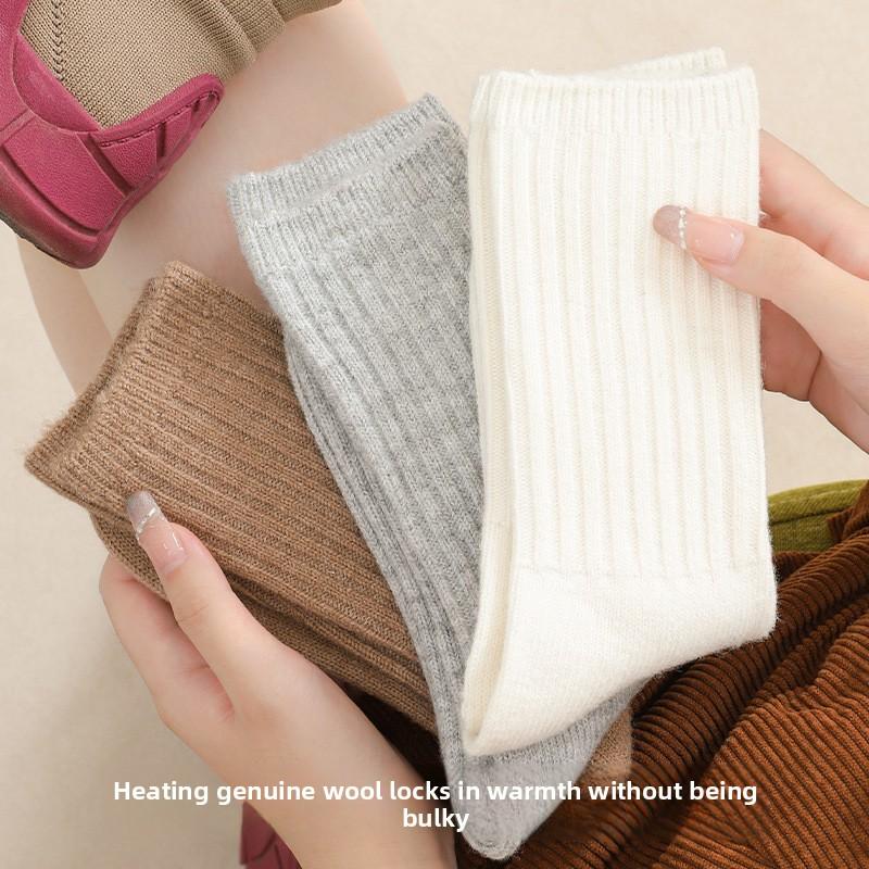 Wool Socks, Women's Mid-calf Socks, Autumn and Winter Thickened and Fleece Warm Cashmere Long Socks, Deodorizing Pile Socks