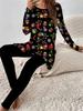 Moda Euroamerykańska Damski Zestaw Dwuczęściowy T-shirt z Długim Rękawem na Cztery Pory Roku + Długie Spodnie z Nadrukiem Świątecznym 3D. Idealny prezent na Nowy Rok i Boże Narodzenie
