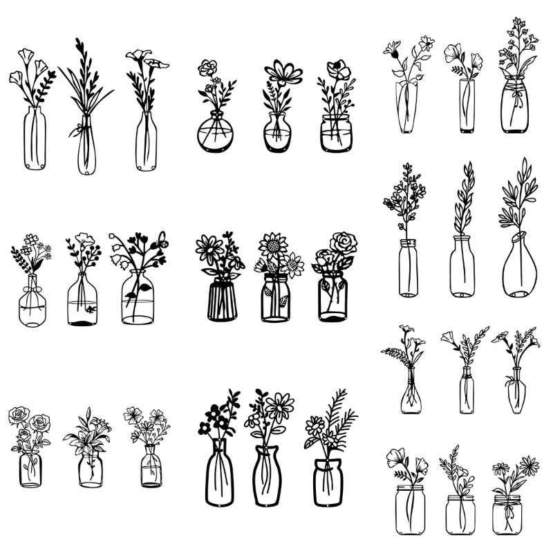 Flower Vase Wall Decorations Metal Flower Vase Sculpture HollowOut Wall Sign Sculpture Hangings Decorations for Bedroom