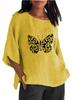 Women Fashion 3/4 Long Sleeve Top Spring&summer Round Neck Print Shirt Ladies Pullover Cotton Linen Blouse