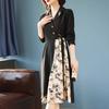 Zapinany damski pulower z nadrukiem na klapie, modny, casualowy, elegancki, z długim rękawem, sukienka do talii