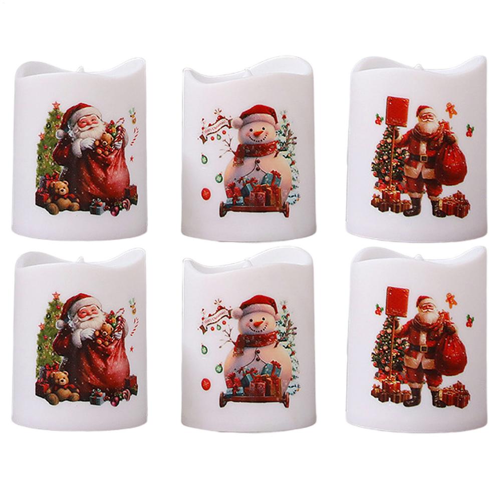 6PCS LED Christmas Candles Flameless Santa Claus Snowman Electronic Candle for Holiday Home Atmosphere Lighting Xmas Gift