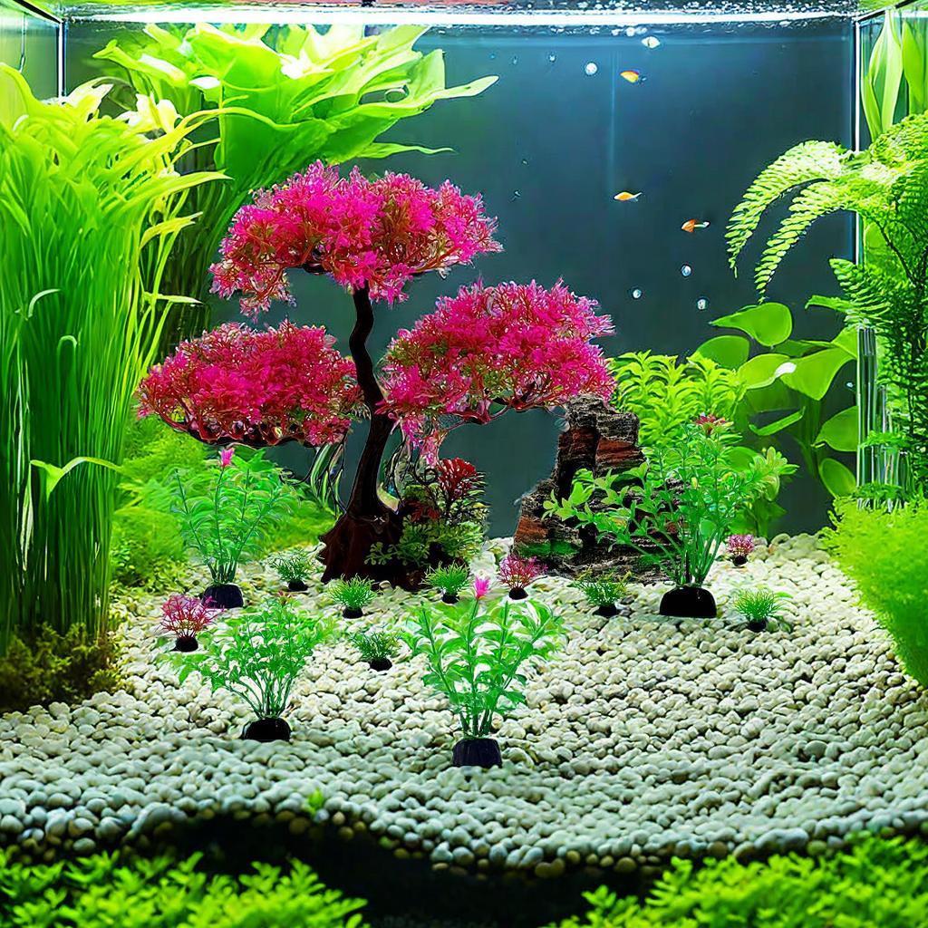 20PC Fish Tank DIY Artificial Aquarium Decor Plants tree Ornament Aquatic Plant Grass Rockery Grass Blocking Rings Set