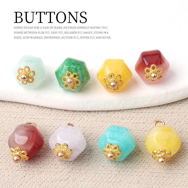 5pcs Flower Tray Jade Hexagonal Bead Button Chinese Tang Style Hanfu Button Shirt Cardigan Sweater Lantern Bead Button