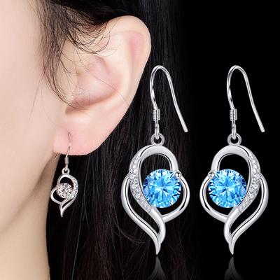 Kolczyki z cyrkonii posrebrzane, małe modne średnie i długie kolczyki temperamentowe, kolczyki Love Soft Water dla kobiet