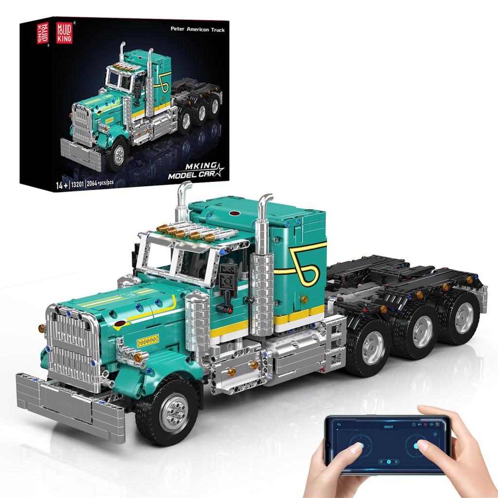 Mould King 13201 Zestaw do budowy ciężarówki, Model ciężarówki sterowany przez aplikację i RC, Zestaw klocków do budowy pojazdu przyczepy STEM, Kolekcjonerski