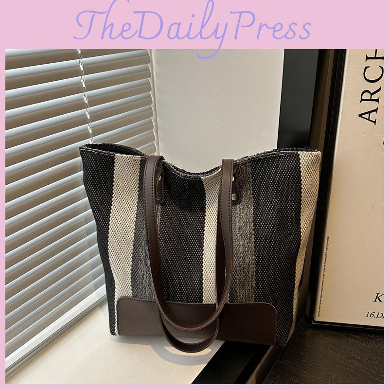 Fashionable Striped Colorblock Shoulder Tote Bag For Women With Comfortable And Practical Design