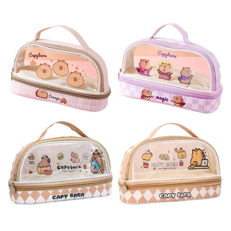 Cartoon Capibala Pencil Bag Large Capacity Pencil Case Aesthetic Pen Case Makeup Bag Clear Pen Bag Pencil Organisers