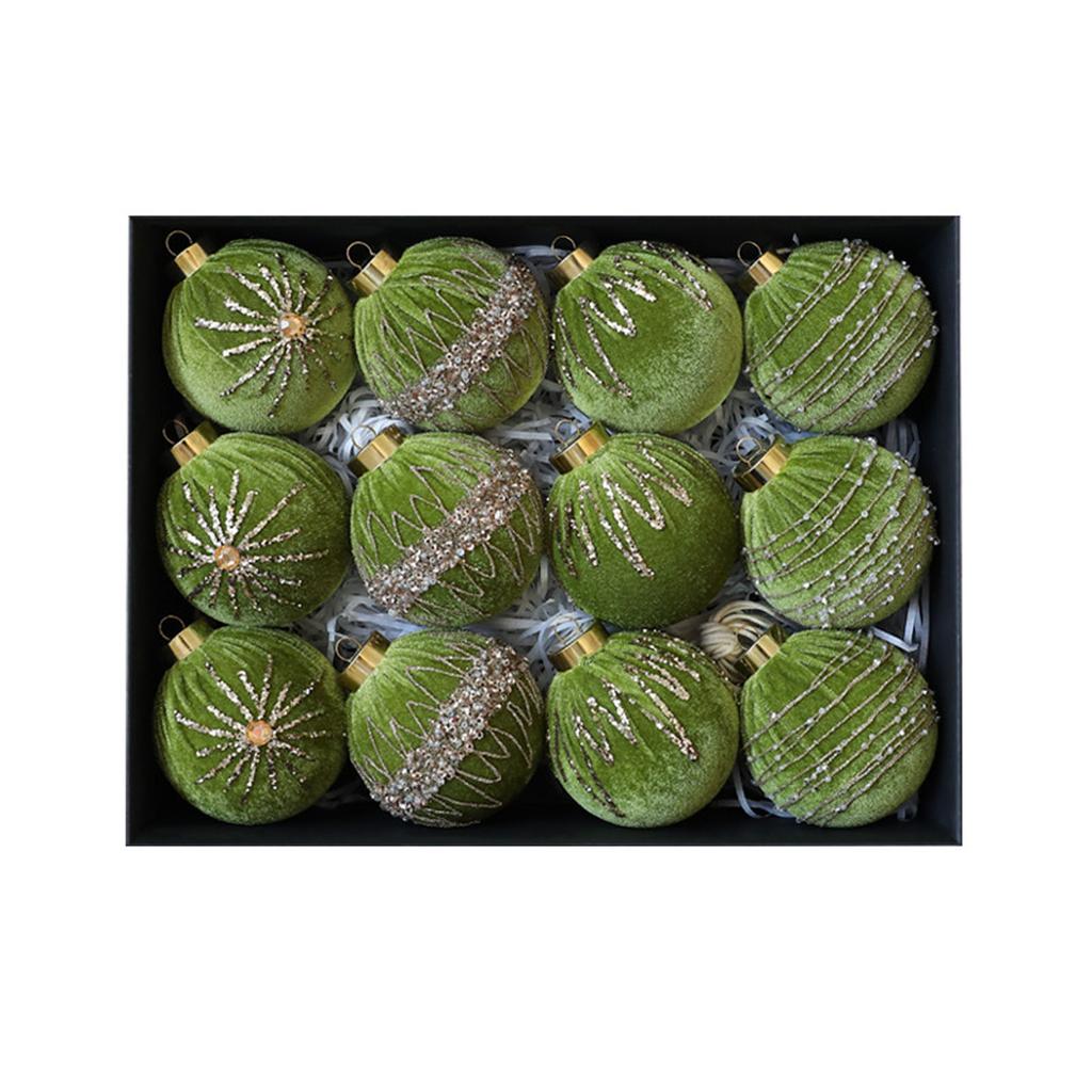 12pcs/8cm Rhinestone Velvet-Wrapped Christmas Ball Exquisite Christmas Balls Decorative Hanging Ornaments Christmas Decoration