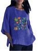 Women Fashion O Neck Print Shirt Spring&summer 3/4 Long Sleeved Top Ladies Cotton Linen Blouse