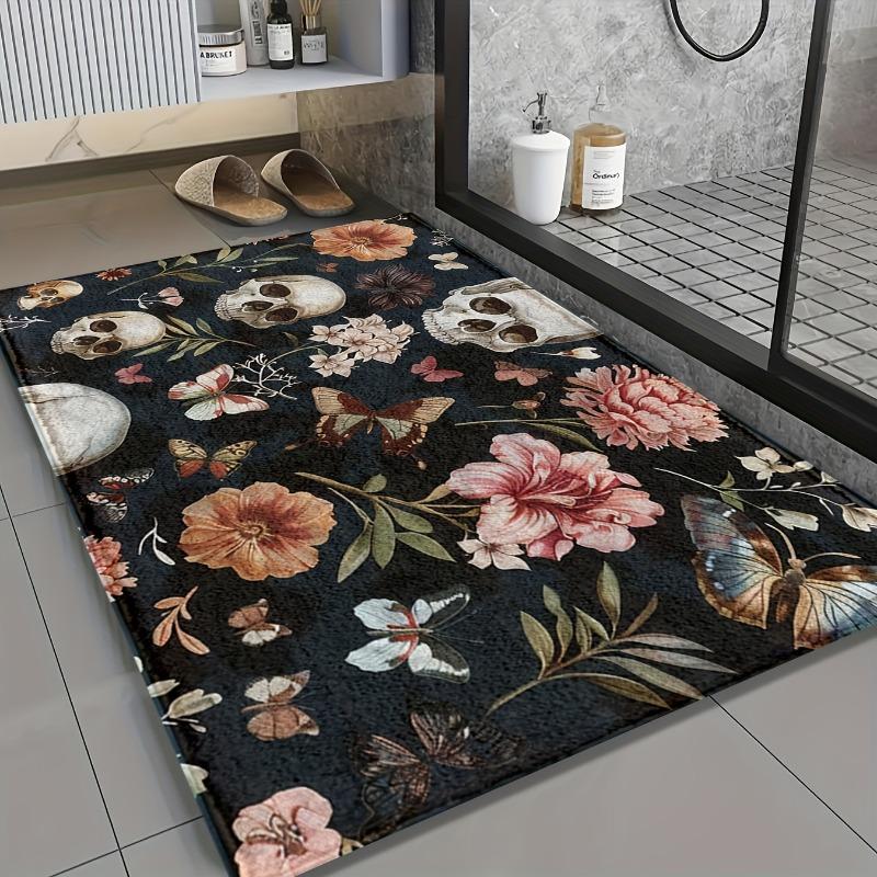 Halloween Themed Carpet Mat with Skull and Butterfly Patterns Suitable for Kitchens Bathrooms Rug Giving Friend Unique Gift Idea