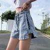Spodnie letnie Klasyczne i minimalistyczne, modne, uniwersalne, letnie, zapinane na zamek z boku, damskie, z wysokim stanem, cienkie, luźne, z szerokimi nogawkami, do noszenia na zewnątrz, dżinsowe szorty z napisem