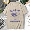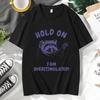 Hold on I'm Overstimulated Funny T-Shirts Male Cute Cartoon Raccoon Graphic T Shirts Men Women's Fashion O-Neck Cotton Tee Shirt
