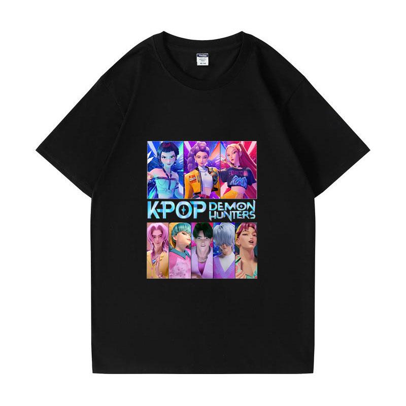 Kpop Łowcy Demonów HUNTRIX Saja Chłopcy Koszulki Dziewczęce Okrągły Dekolt Casualowe Damskie Letnie Koszulki Bawełniana Koszulka Wysokiej Jakości Odzież Topy