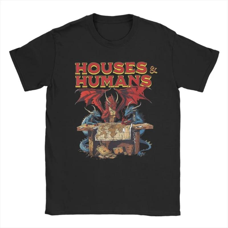 Popular Houses and Humans Retro 90s T-Shirts Men 100%Cotton T-Shirts Dungeon Dragon DnD New Short Cotton Best Selling Round Neck