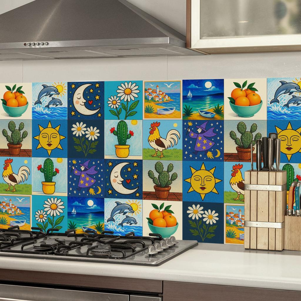 24 szt. Naklejki na płytki w stylu europejskim Kuchnia Samoprzylepne Odporne na olej Naklejki ścienne Wodoodporny Winyl Zdejmowalne Naklejki ścienne