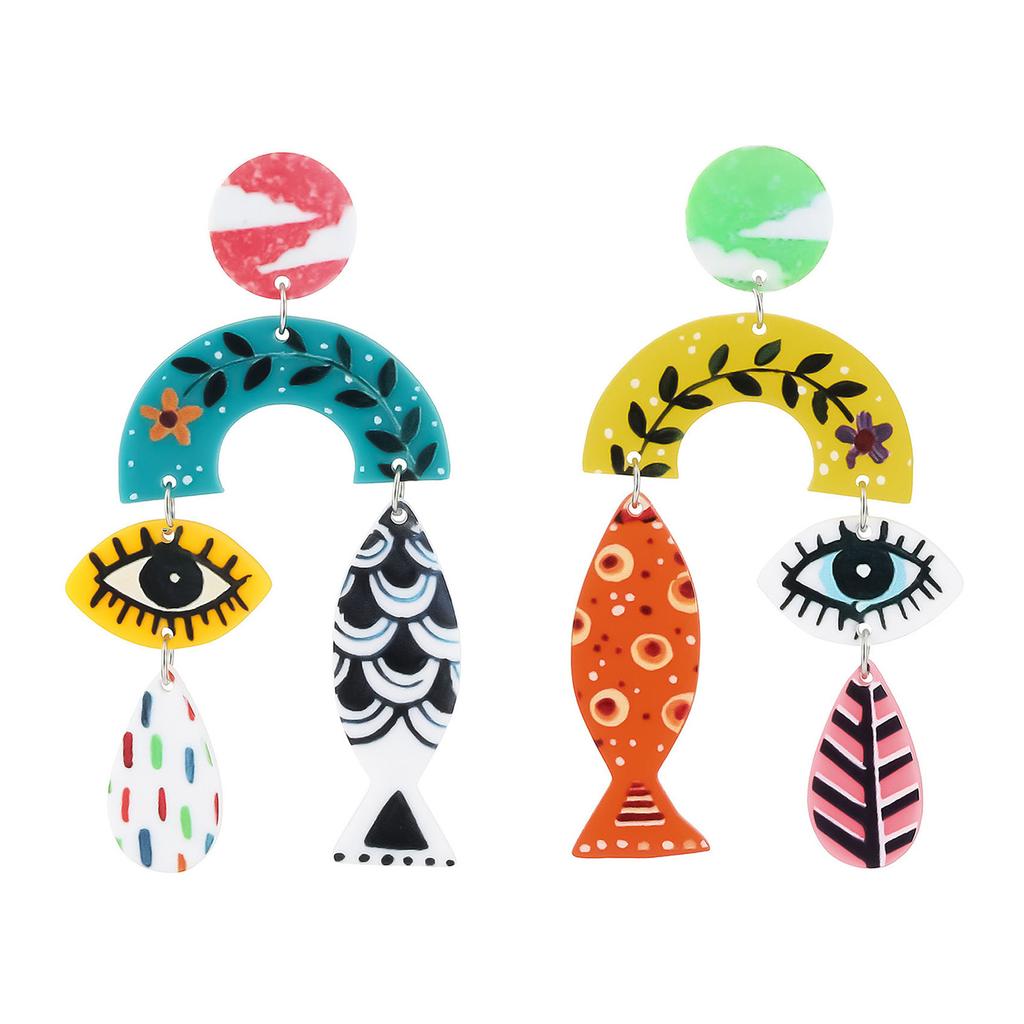Kolczyki w stylu etnicznym dla kobiet, vintage, z nadrukiem liścia i rybiego oka, akrylowe kolczyki wiszące, biżuteria dopaminowa dla dziewcząt, akcesoria do uszu