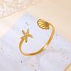 Vintage Reluster Opening Bracelet For Women Stainless Steel Ocean Element Shell Starfish Scallop Shape Bangle Jewelry Accessory
