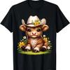 Urocza szkocka krowa wyżynna nosząca bandanę ze słonecznikiem, koszulka cielęca