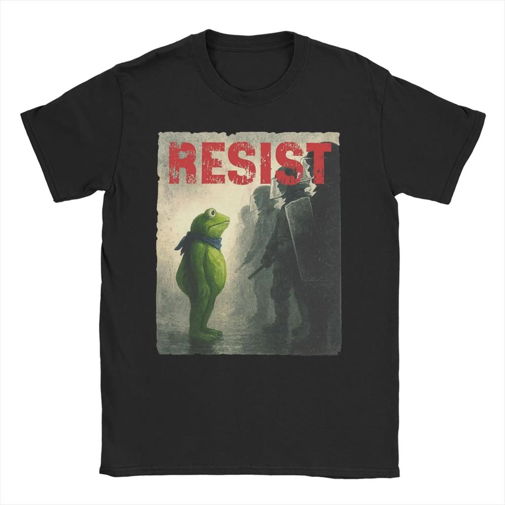 Śmieszne koszulki z memami Resist Portland Żaba Rage Against The Machine Sztuka z żabą Bawełniana koszulka z krótkim rękawem Dekolt O Ubrania Unisex
