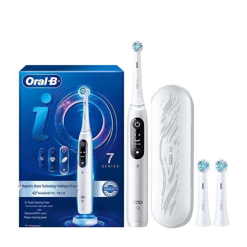 Experience a superior clean with the Oral-B iO7 Series Smart Electric Toothbrush. Featuring revolutionary iO magnetic technology, this toothbrush offers multiple cleaning modes (Smart, Gentle, Sensitive) and over five intensity levels for personalized care. It connects via Bluetooth for APP leak brush detection and provides over-pressure and brush head replacement reminders. Designed for adults, it boasts soft, small round bristles, IPX7 waterproofing, and convenient induction charging (3H). Includes a portable case, perfect for daily use and travel.