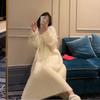 Medium and long pullover knitted top for women's autumn and winter new loose temperament lapel sweater skirt