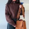 Half-zipper sweater women's loose outer wear autumn and winter new pullover short high-waisted design bottoming knitted sweater top