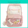 This backpack doesnt just prioritize practicality; it also embraces a whimsical and cute style that kids adore. The simple yet eye-catching design features charming stitching details, adding a touch of character to the backpack. Whether on a field trip, at school, or during playdates, this backpack is sure to complement your child's outfit and spark joy in their everyday activities.