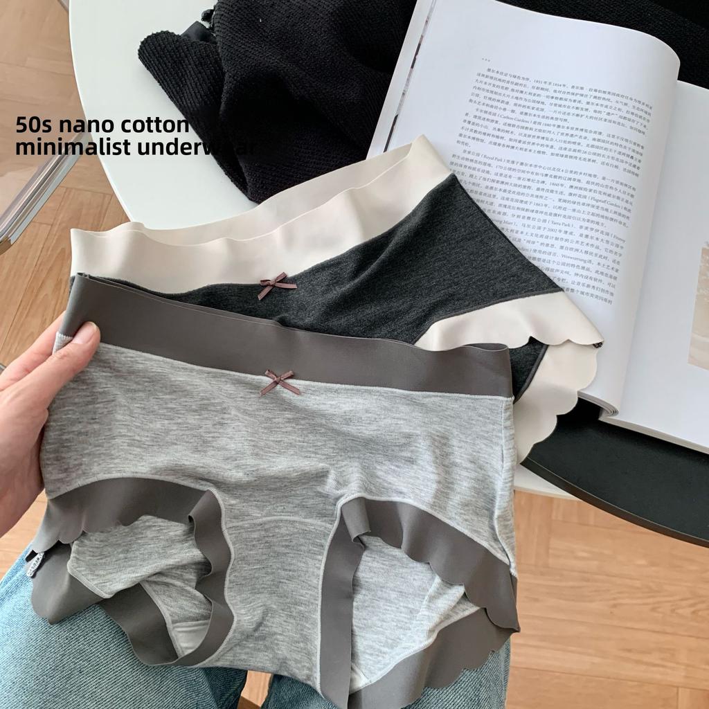 Women's Spring and Autumn Simple Color Collision 10A Antibacterial Extended Crotch Waist Non Trace Briefs