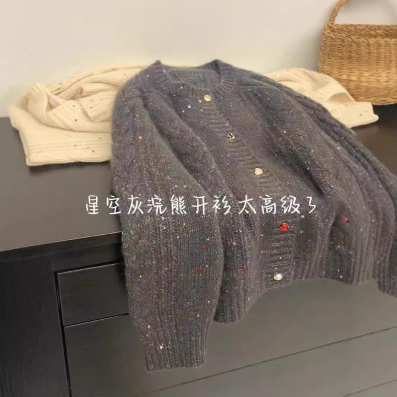 Recommended gray sequined raccoon fleece sweater cardigan jacket women's autumn and winter new knitted sweater