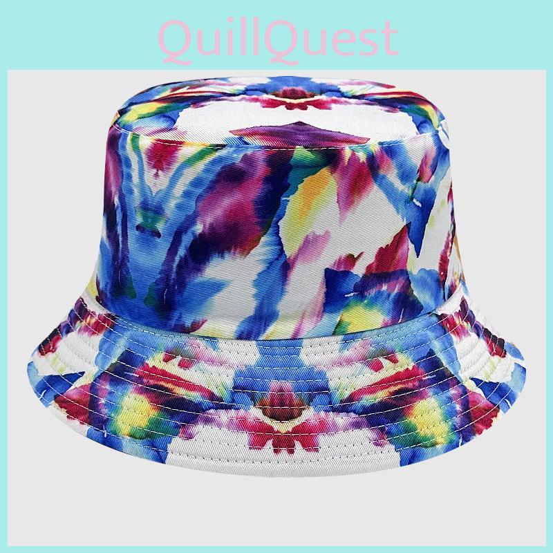 This dye-printed bucket hat features a flat crown and short brim, crafted from breathable cotton fabric.suitable for head sizes 56-58cm, it delivers effective sun protection and shading during outdoor activities. Perfect for summer outings, it is easy to maintain with gentle hand washing.