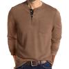 Fashionable Men's Henley Shirt Long Sleeve Button-up T-shirt with Pocket Digital Print Solid Pattern