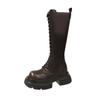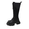 Modne damskie wysokie buty sznurowane z przodu, wysokie, rurkowe, na środku, z grubą podeszwą, modne buty, jednokolorowe, okrągłe, na platformie, buty do pracy