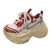 Modne 8,5 CM Wygodne Grube Trampki Codzienne Outdoor Antypoślizgowe Wulkanizowane Buty Damskie Wysoka Platforma Trampki Sznurowane Buty Sportowe Damskie