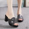 Fashion Slides Outside Black Shoes Rhenstone with Heel Women's Slippers and Ladies Sandals Jewels Crystals New Collection Original Pvc