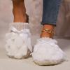 Moda 2024 Markowe Damskie Buty Baotou Damskie Kapcie Modne Kokardki Domowe Bawełniane Buty Nowe Plus Size Krótkie Pluszowe Płaskie Kapcie