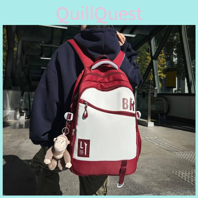 Letter Fashionable Pattern Students Large Capacity Backpack With Pendant