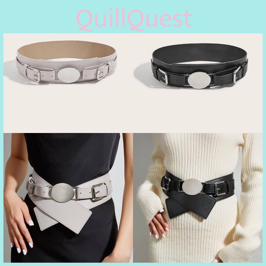 Wide Faux Leather Belt For Women With Square Buckle Handmade Beaded Decor For Autumn Winter Fashion