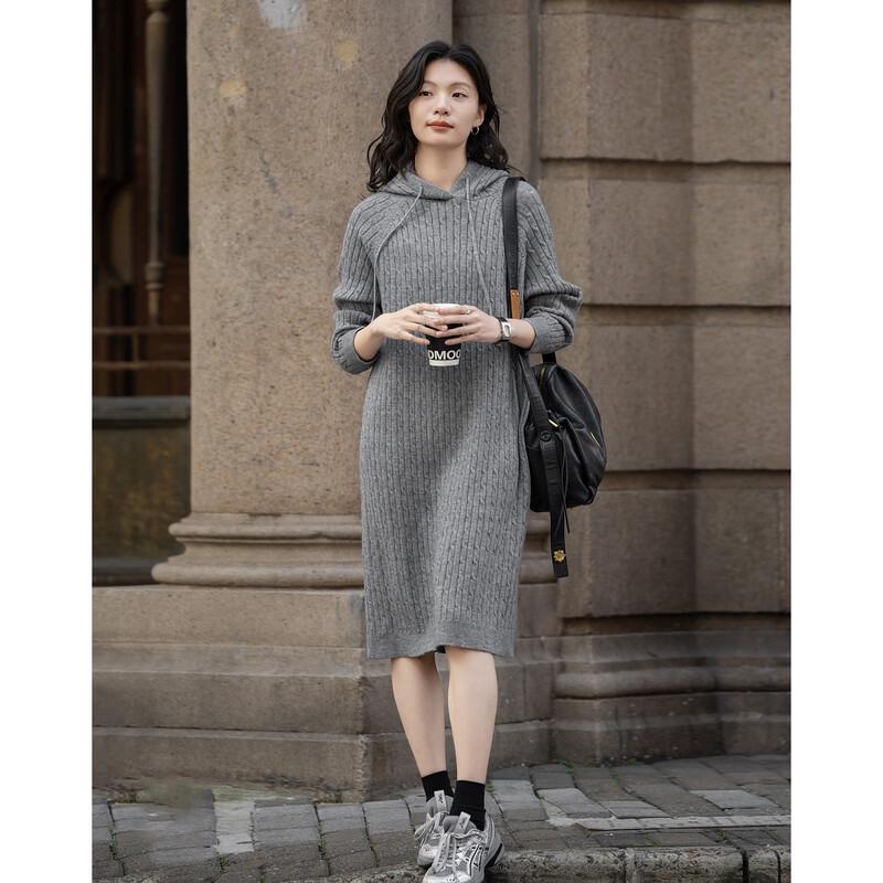 Demana Women's Korean Style Hooded Cable Knit Mid-length Dress