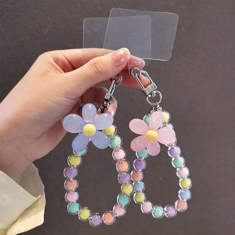 Colorful Flower Keyring Beaded Chain Keychain Keys Accessories For Phone Pendnat Anti-lost Lanyard Hand-held Chain Wrist Pendant