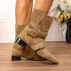 Fashion Short Boots Women Autumn/winter Genuine Leather Suede Square Toe Womens Shoes Two in One Foldable Thick Heel Midsole Boots Woman