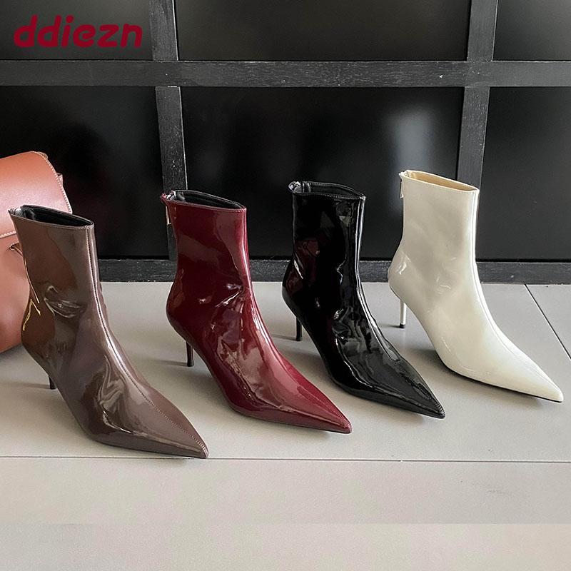 Fashion Sexy Ladies Modern Ankle Boots Female Heels Shoes Zippers Fashion Pointed Toe Women Stretch Short Boots Pumps Shoes