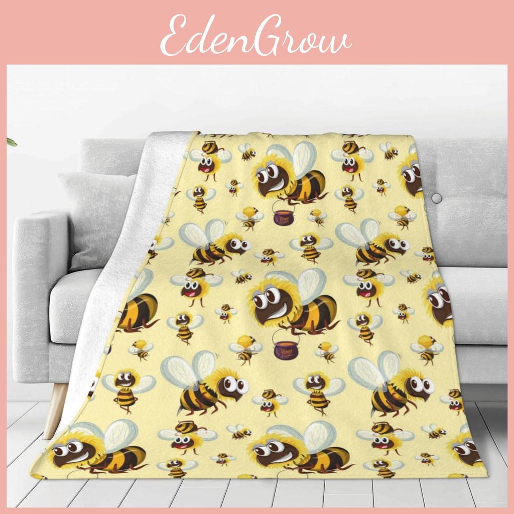 Modern Minimalist Cartoon Bee Fleece Throw Blanket For Childrens Bedroom And Living Room
