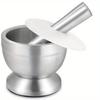 Stainless Steel Manual Mortar and Pestle Set with Silicone Lid - Ideal for Kitchen & Restaurant Use, Perfect for Herbs & Spices