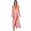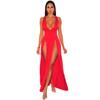 Nowości Kobiety Seksowne Wysokie Rozcięcia Sukienki Bez Rękawów Głęboki Dekolt w Serek Wysokie Rozcięcie Długie Imprezowe Obcisłe Czerwone Letnie Sukienki