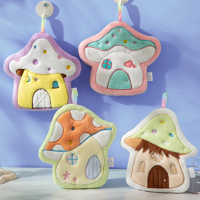 1Pc, Soft And Absorbent Coral Fleece Mushroom Hand Towel For Home, Kitchen, And Bathroom Use, Tea Towel